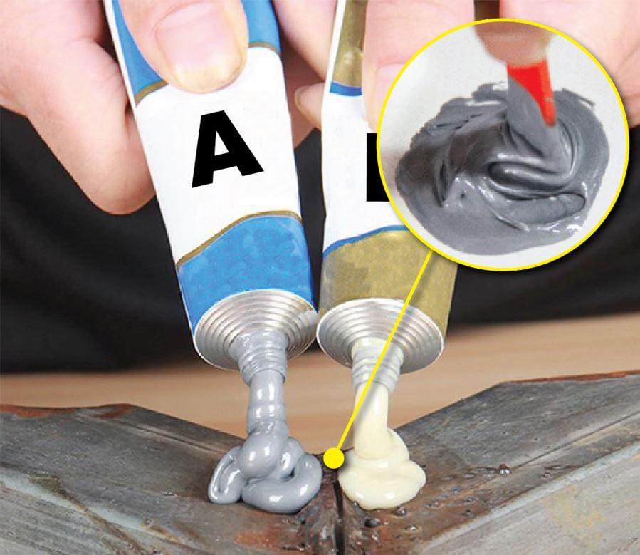 Essa Magic Glue é reforçada com aço, tem uma resistência à tração e pode suportar altas temperaturas.