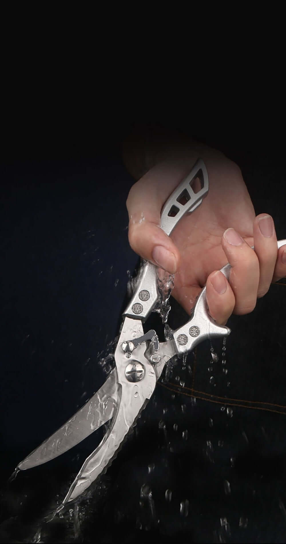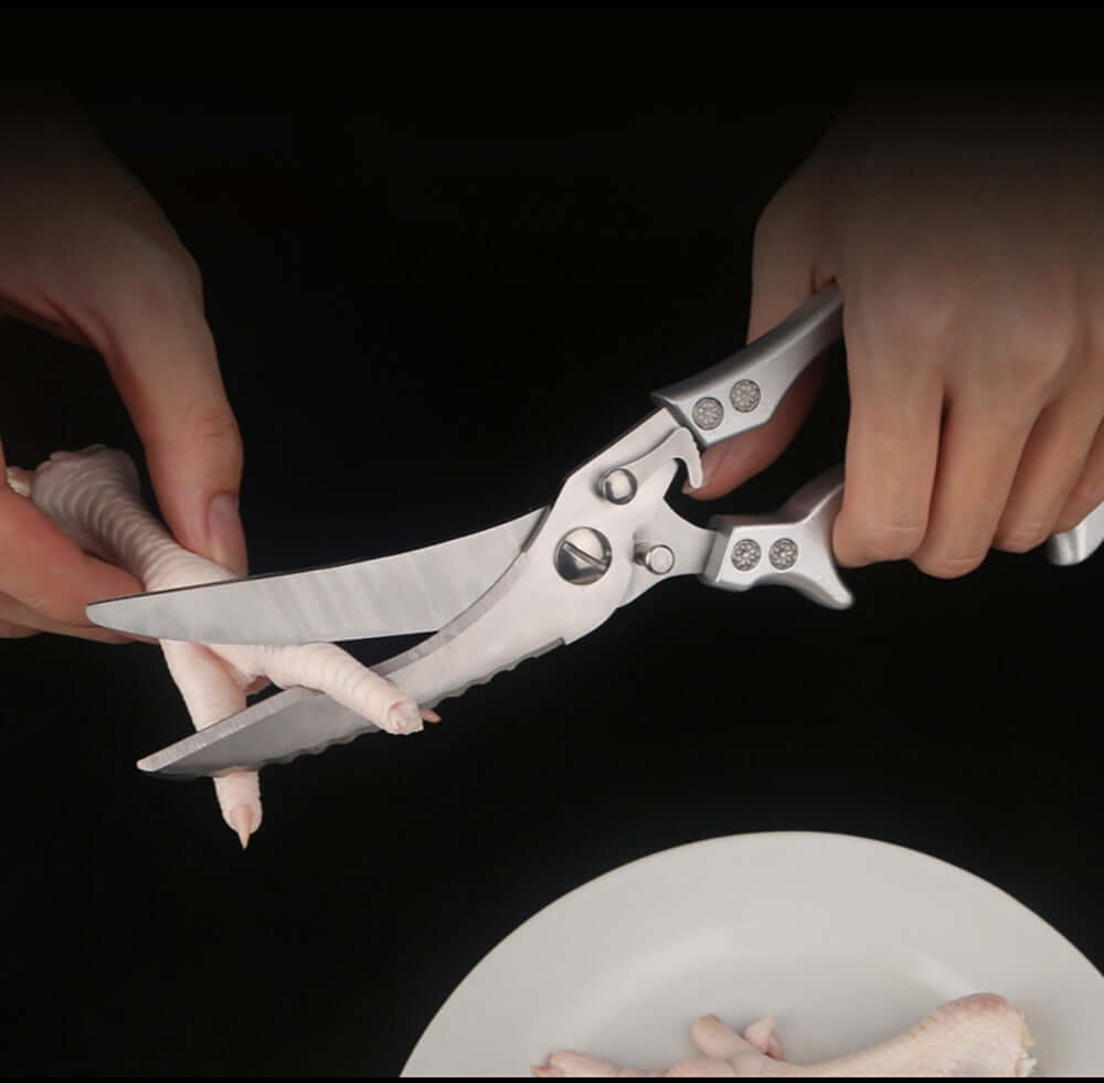 ✅ Tesoura multiuso afiada para carne, legumes e ossos.